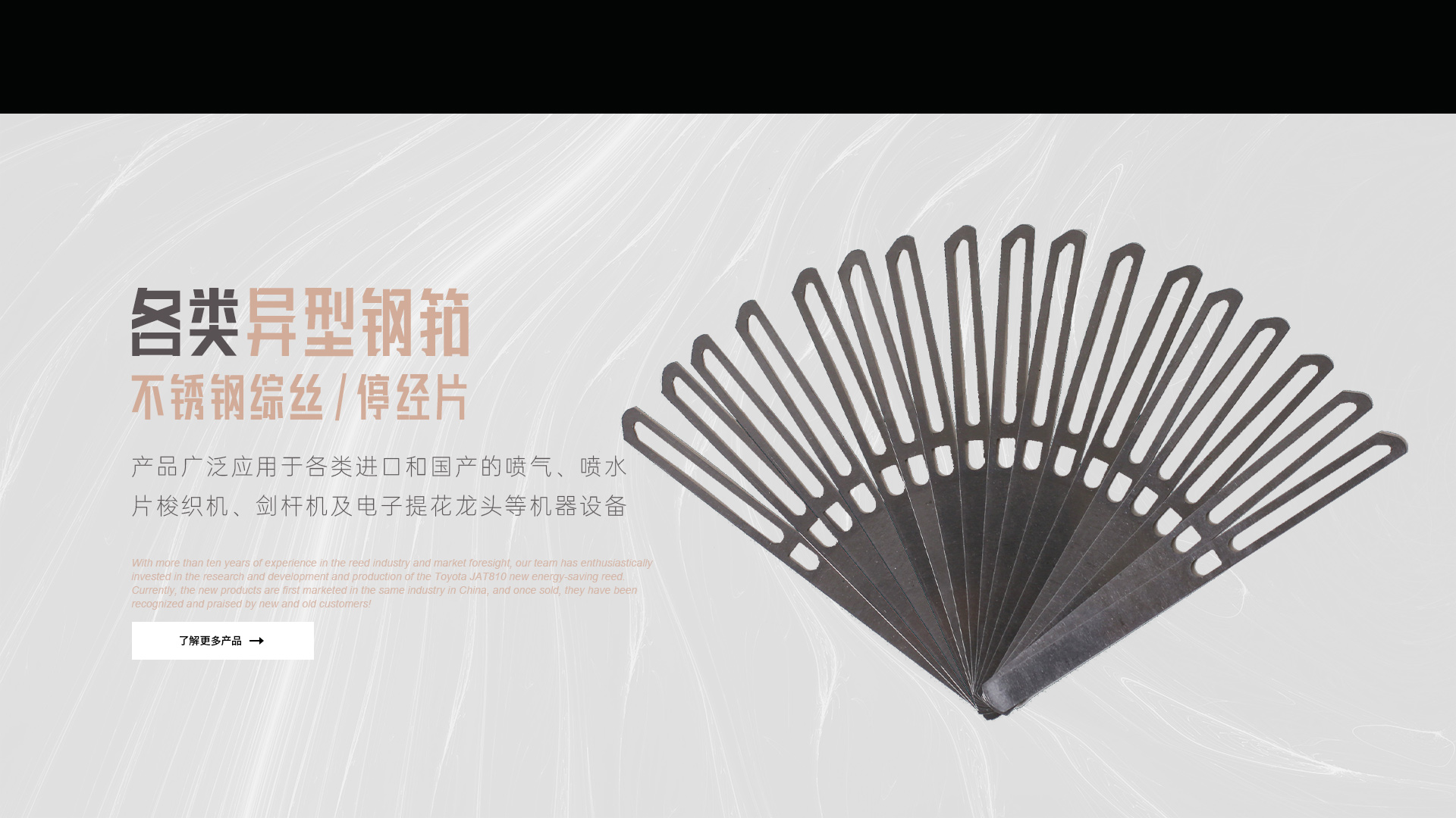 憑借十多年鋼筘行業(yè)經(jīng)驗(yàn)及對(duì)市場(chǎng)的前瞻性,我們團(tuán)隊(duì)滿懷熱情的投入到豐田JAT810新型節(jié)能鋼筘的研發(fā)和生產(chǎn)當(dāng)中,目前新產(chǎn)品在國(guó)內(nèi)同行業(yè)中先行上市銷售,一經(jīng)銷售就得到了新老客戶的認(rèn)可和好評(píng)!